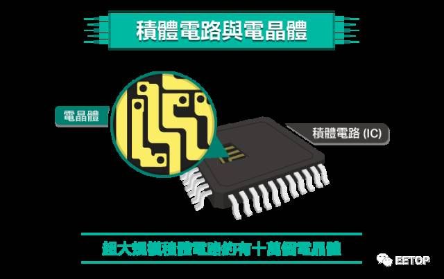 事实上,这数亿个电晶体,全部都塞在一个长宽约半公分、指甲大小的晶片上。这片晶片包含电晶体等电子元件,就叫做「集成电路」(Integrated Circuit, IC),俗称IC。
